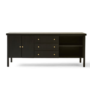 Estructura, frentes y laterales en madera natural pintada con un tratamiento a base de pintura y laca al agua libre de solventes. Súper natural, súper resistente. Tiradores de Bronce.