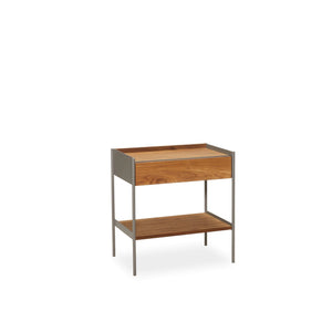La tapa y frentes de cajones están realizados en madera multilaminada enchapada a mano con madera de petiribí 100% natural, con una terminación suave de laca al agua pero muy resistente.